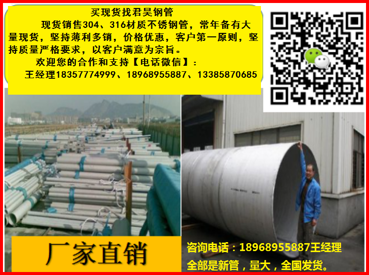 溫州君昊不銹鋼專業(yè)生產(chǎn)青山不銹鋼管,其中304不銹鋼價格市場最便宜,規(guī)格齊全質(zhì)量可靠、銷量最大),歡迎各位朋友及同行采購合作。祝各位同行朋友們,生意興隆,財源廣進。歡迎各位新老客戶合作雙贏。