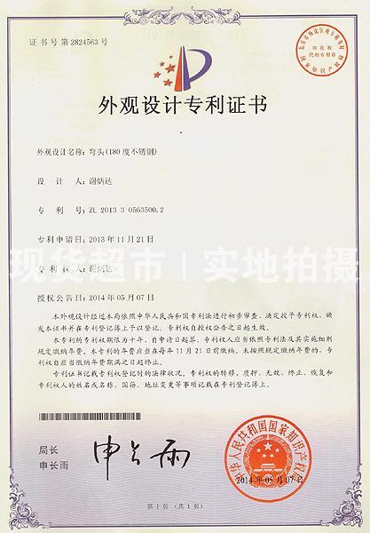 • 溫州華鼎管件制造有限公司,華鼎外觀設(shè)計專利證書