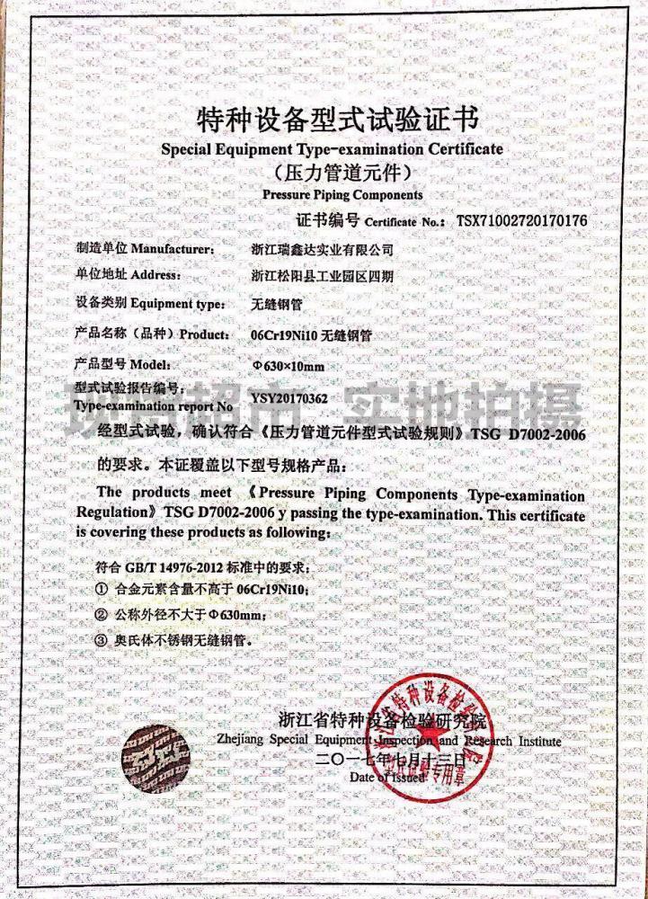 浙江江瑞鑫達實業(yè)有限公司,創(chuàng)始于1992年,是國內(nèi)大型不銹鋼無縫管生產(chǎn)企業(yè),公司固定資產(chǎn)超億,瑞鑫達專業(yè)生產(chǎn)高溫(鎳基)合金、奧氏體、雙相鋼、尿素級不銹鋼、超級不銹鋼等系列的鋼管。公司配備年產(chǎn)15000噸不銹鋼無縫管生產(chǎn)線,公司擁有德國進口直讀光譜儀、超聲波探傷儀、渦流探傷儀、水壓 試驗機、X射線透視儀、氮氧分析儀、萬能試驗機、沖擊試驗機、自動碳硫分析儀、內(nèi)窺鏡等全套檢驗檢測設(shè)備。先進的檢驗檢測設(shè)備以及嚴格的科學化管理, 確保每一批出廠產(chǎn)品能滿足客戶的需求,質(zhì)量管理體系ISO9001認證、環(huán)境管理體系IS